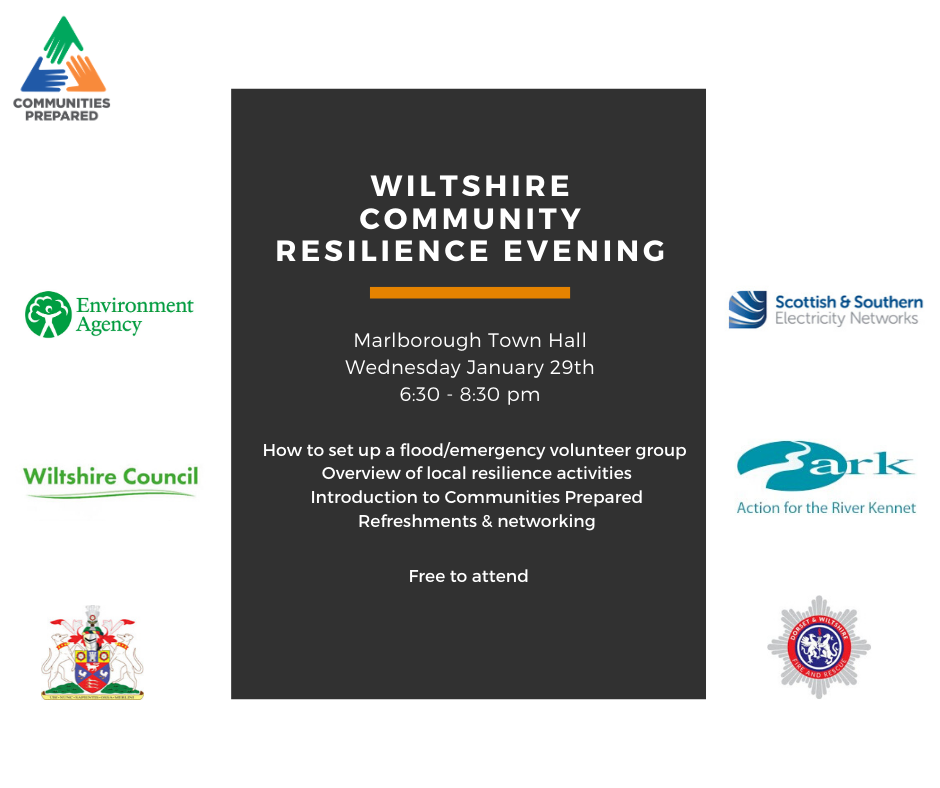 We’re pleased to be speaking at next Wednesday’s Wiltshire community resilience evening, hosted by Communities Prepared in partnership with the Environment Agency, SSEN, Wiltshire Council and Marlborough Town Council at Marlborough Town Hall, 6:30-8:30 pm. The event will explore how communities can feel a part of the solution to floods and other severe weather emergencies. We’ll be discussing the role of community volunteering in natural flood management and some of our other local projects. Refreshments provided. Register your free place: https://www.eventbrite.co.uk/e/wiltshire-community-resilience-evening-tickets-85628429939
