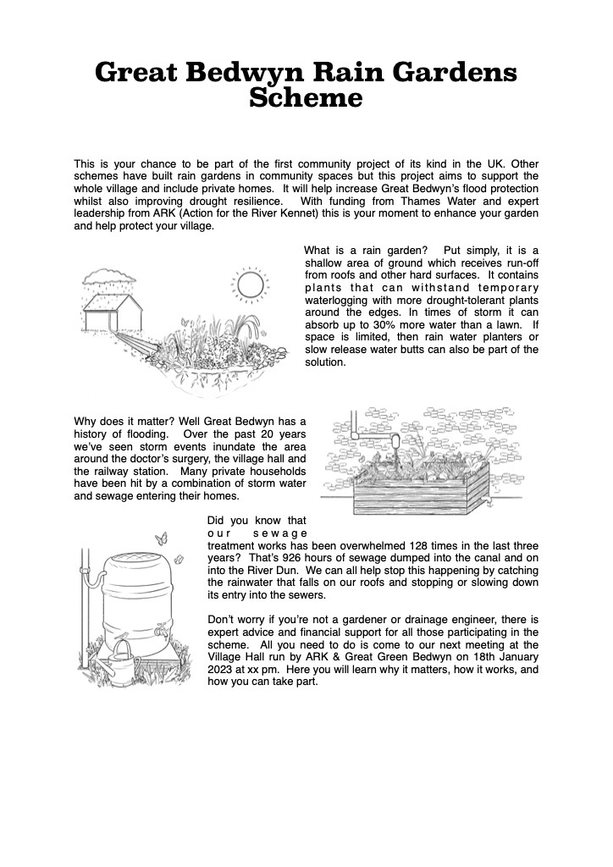 Another opportunity to find out how to take part in the Great Green Bedwyn Rain Garden project.