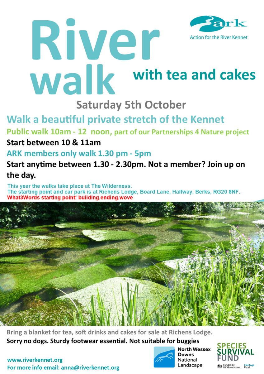 A very special opportunity to walk a delightful route along the Kennet chalk stream riverbanks within The Wilderness, at Kintbury and a chance to learn about our P4N project, carrying out river habitat improvements at this site.