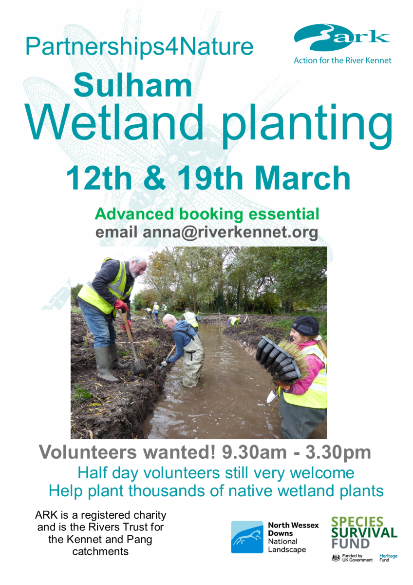 Get involved and help plant thousands of native marginal plants at our new Sulham Wetland.