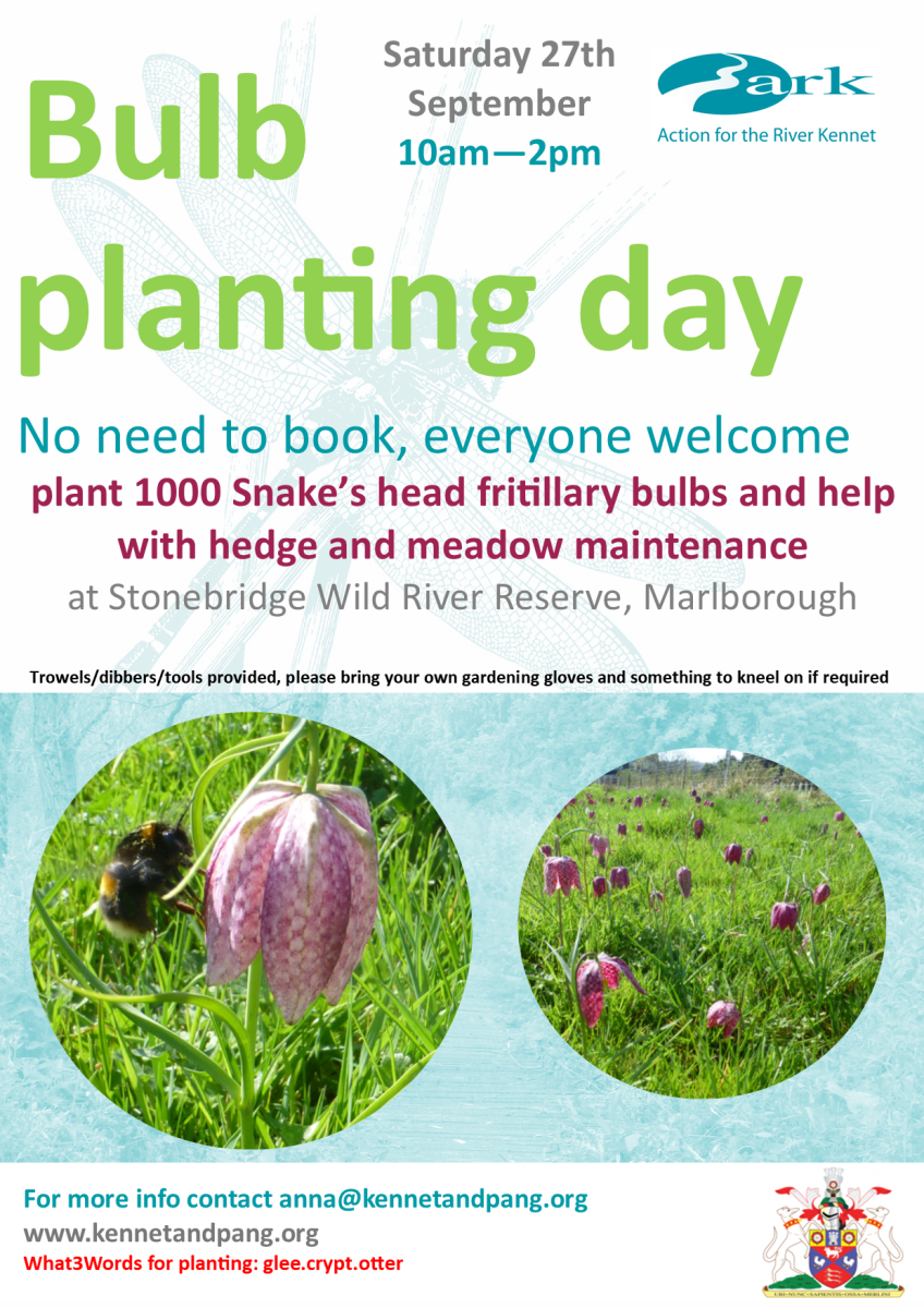 Volunteer and help plant 1,000 Snake's head fritillary bulbs, carry out hedge maintenance and rake cut grasses (part of our twice yearly cut) to increase biodiversity at the 15 acre water meadow at Stonebridge Wild River Reserve, Marlborough.